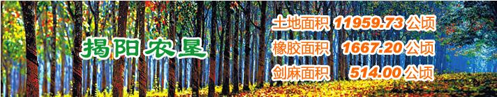 廣東省揭陽農(nóng)墾集團(tuán)有限公司(農(nóng)墾局)下轄6個農(nóng)場有限公司。墾區(qū)管轄26個代管村,現(xiàn)有總?cè)丝?.11萬人,墾區(qū)土地面積17.77萬畝,目前種植天然橡膠3.13萬畝,水果 2.57萬畝,光伏農(nóng)業(yè)0.8萬畝,并探索發(fā)展一批特色產(chǎn)業(yè)等。